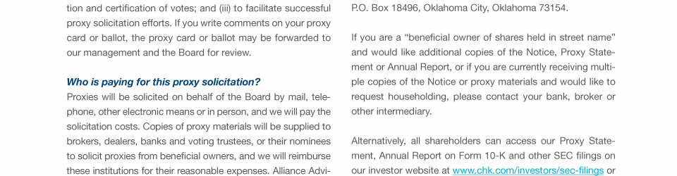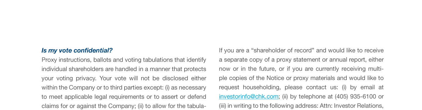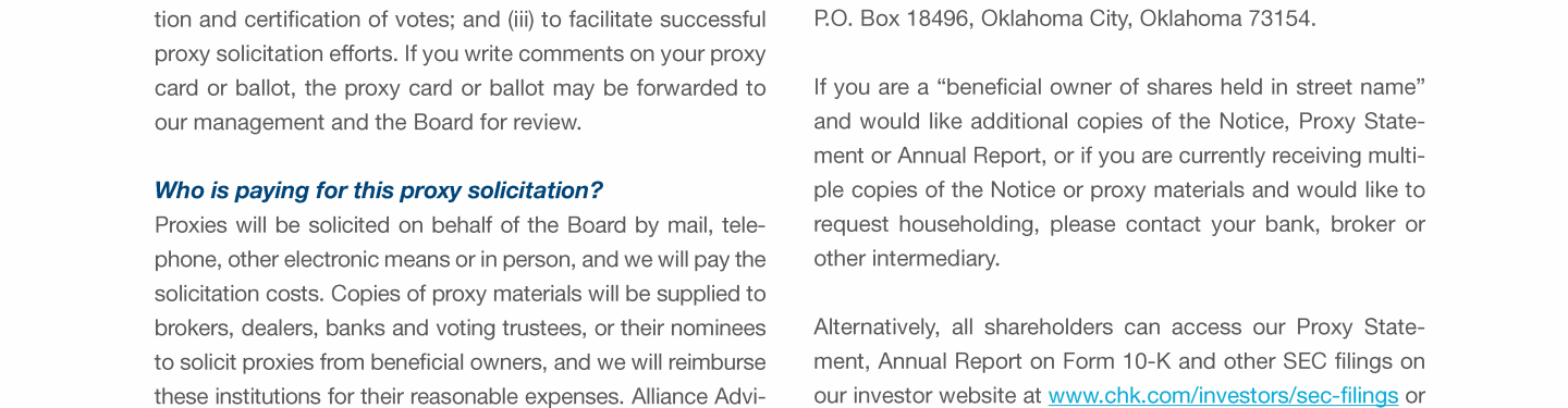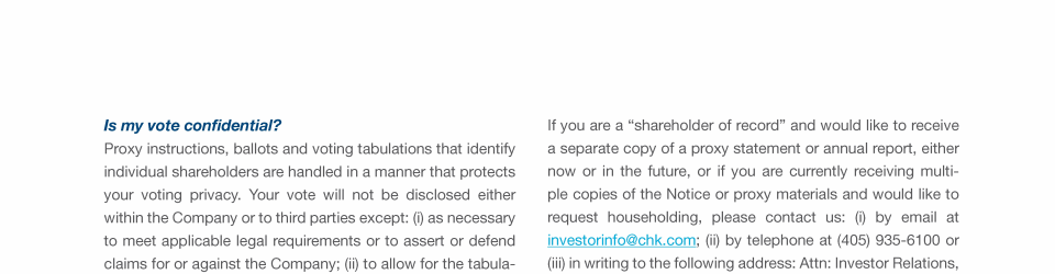 Click here to send a message to investorinfo@chk.com Click here to send a message to investorinfo@chk.com Click here to send a message to investorinfo@chk.com Click here to go to www.chk.com/investors/sec-filings Click here to go to www.chk.com/investors/sec-filings Click here to go to www.chk.com/investors/sec-filings Click here to go to www.chk.com/investors/sec-filings Click here to go to www.sec.gov Click here to go to www.chk.com/investors/sec-filings Click here to go to www.sec.gov Click here to go to www.chk.com/investors/sec-filings Click here to go to www.sec.gov Click here to send a message to investorinfo@chk.com Click here to go to www.chk.com/investors/sec-filings Click here to go to www.chk.com/investors/sec-filings Click here to go to www.sec.gov Click here to send a message to investorinfo@chk.com Click here to go to www.chk.com/investors/sec-filings Click here to go to www.chk.com/investors/sec-filings Click here to go to www.sec.gov
