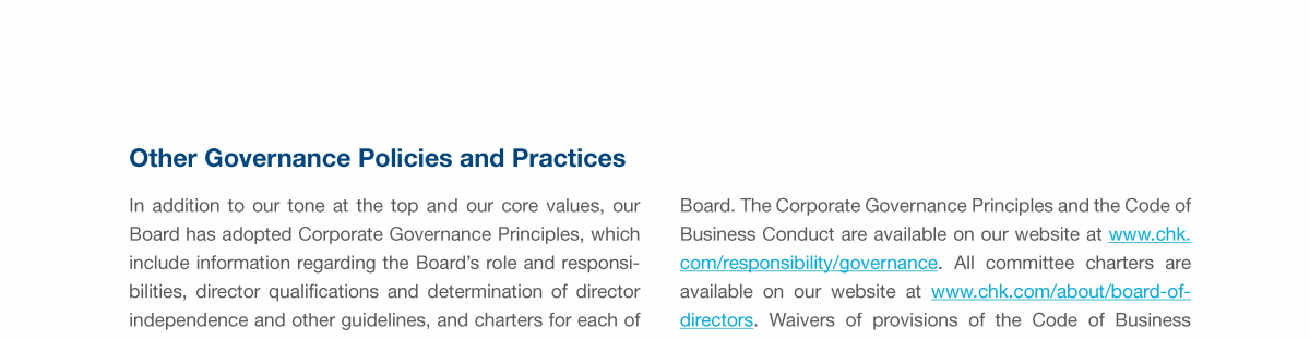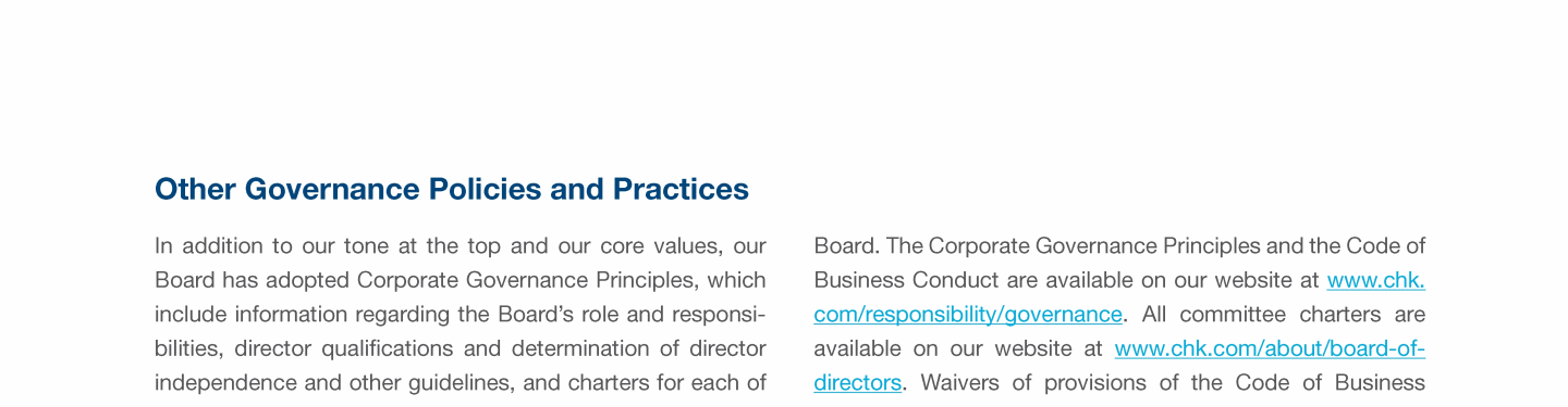 Click here to go to www.chk.com/responsibility/governance Click here to go to www.chk.com/responsibility/governance Click here to go to www.chk.com/about/board-of-directors Click here to go to www.chk.com/about/board-of-directors Click here to go to www.chk.com/responsibility/governance Click here to go to www.chk.com/responsibility/governance Click here to go to www.chk.com/about/board-of-directors Click here to go to www.chk.com/about/board-of-directors Click here to go to www.chk.com/responsibility/governance Click here to go to www.chk.com/responsibility/governance Click here to go to www.chk.com/about/board-of-directors Click here to go to www.chk.com/about/board-of-directors Click here to go to www.chk.com/responsibility/governance Click here to go to www.chk.com/responsibility/governance Click here to go to www.chk.com/about/board-of-directors Click here to go to www.chk.com/about/board-of-directors Click here to go to www.chk.com/responsibility/governance Click here to go to www.chk.com/responsibility/governance Click here to go to www.chk.com/about/board-of-directors Click here to go to www.chk.com/about/board-of-directors